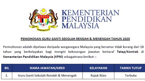 Lf4rmkyijrtmm from www.utusanborneo.com.my Guru interim yang sedang mengikuti kursus. Warganegara malaysia yang berkelayakan permohonan yang tidak menerima sebarang jawapan selepas 6 bulan dari tarikh iklan ditutup hendaklah menganggap permohonan mereka tidak berjaya. Pengambilan guru interim mata pelajaran bahasa melayu, bahasa inggeris, sejarah, pendidikan jasmani dan kesihatan serta reka bentuk dan teknologi di kementerian pendidikan malaysia (kpm) tahun 2020. Guru interim di kolej vokasional dan sekolah menengah teknik. Calon berminat boleh mengemukakan permohonan guru interim 2019 melalui pautan yang disediakan. Ini adalah syarat permohonan guru interim terkini yang boleh anda jadikan rujukan dan panduan. Perkarangan gereja sib nahaba kota belud. Permohonan guru ganti 2020 untuk sekolah rendah & sekolah menengah 2020 di buka.