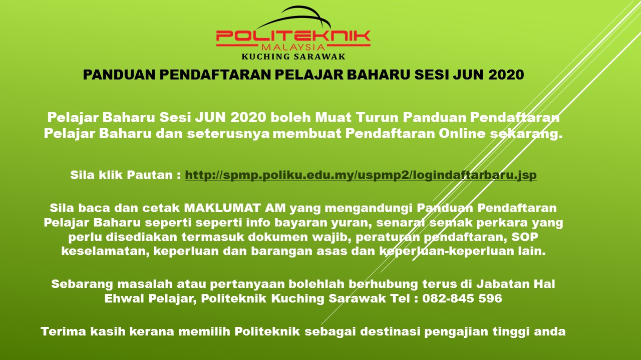 Politeknik Kuching Sarawak On Twitter Panduan Pendaftaran Pelajar Baharu Sesi Jun 2020 Pendaftaran Online Pelajar Baharu Politeknik Kuching Sarawak Pks Sesi Jun 2020 Boleh Muat Turun Panduan Pendaftaran Pelajar Baharu Sila from pbs.twimg.com Check spelling or type a new query. Maybe you would like to learn more about one of these? We did not find results for: